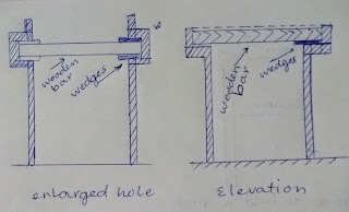 3. Wedge Adjustment: A wedge is hammered between the lid and the prop to tighten the assembly.