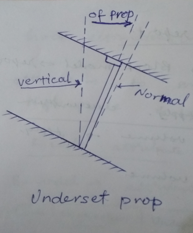 • Underset props: These are props placed at an angle between vertical and normal to the seam. Their use is rare as it is difficult to judge whether they are set correctly.