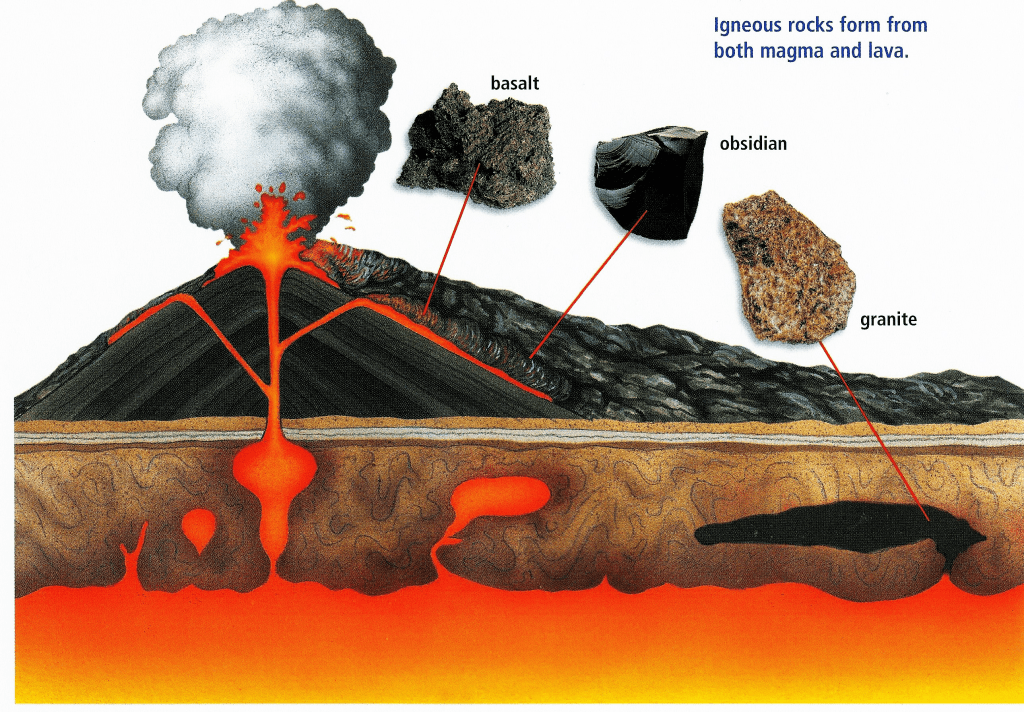 - Igneous Rocks: These form through the solidification of molten material called magma, which originates from within the Earth.